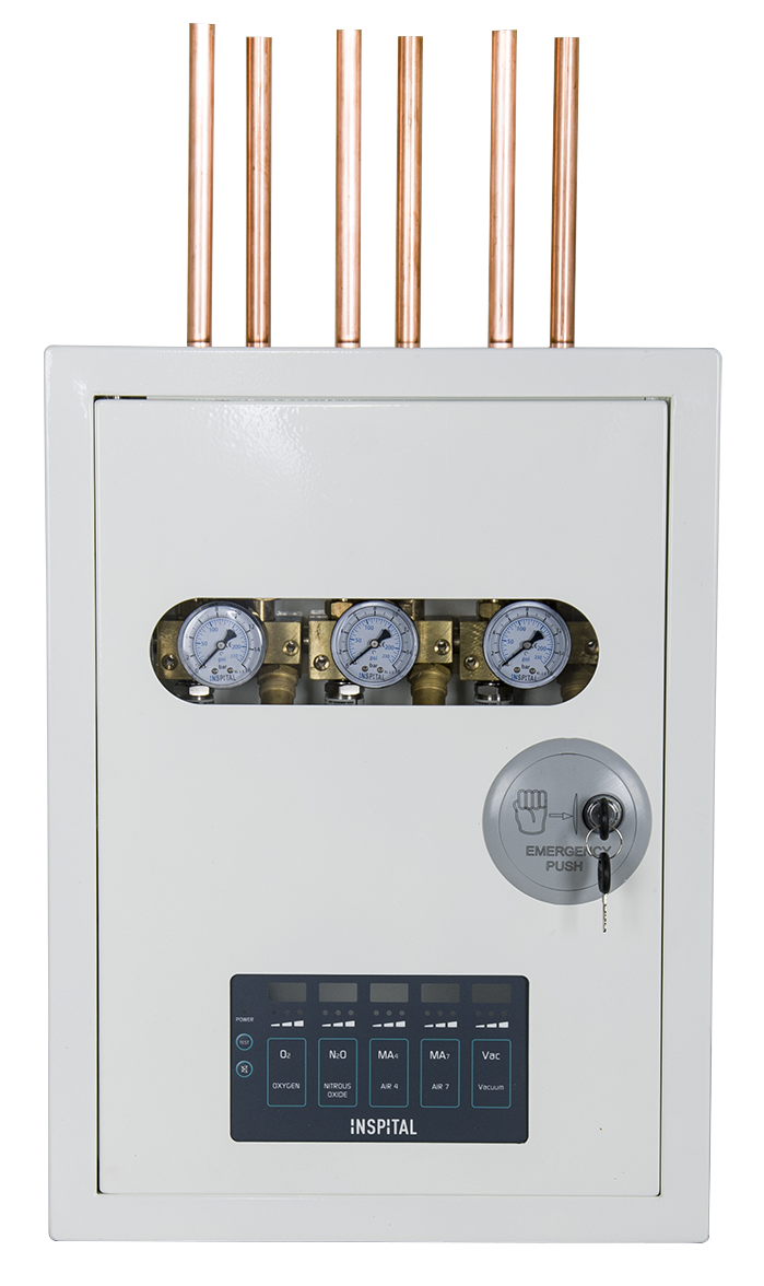 Monitors the medical gas sources and the operating pressure in the pipeline distribution systems.