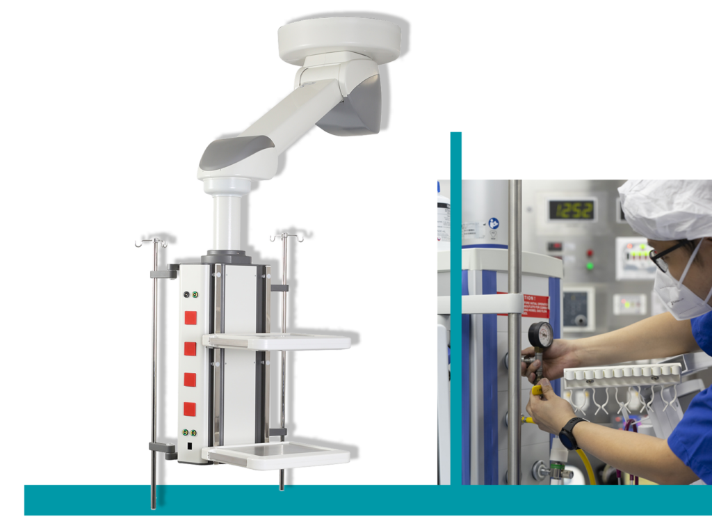INSPITAL single joint pendants are designed to provide single-point service for medical gas, electricity and equipment positioning nearby the patient. Mobility, flexibility and heavy duty design gives a strong support in operating theatres.